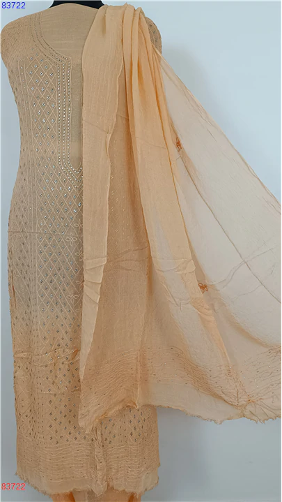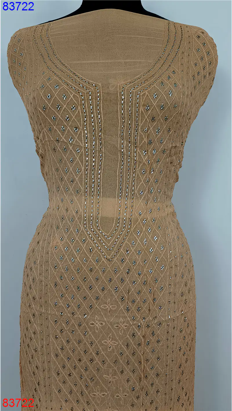 Home » Viscose Suit » Chiffon Mukaish Suit beige or light tan : 83722
