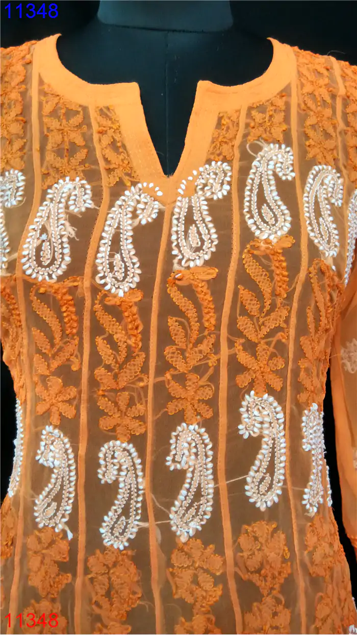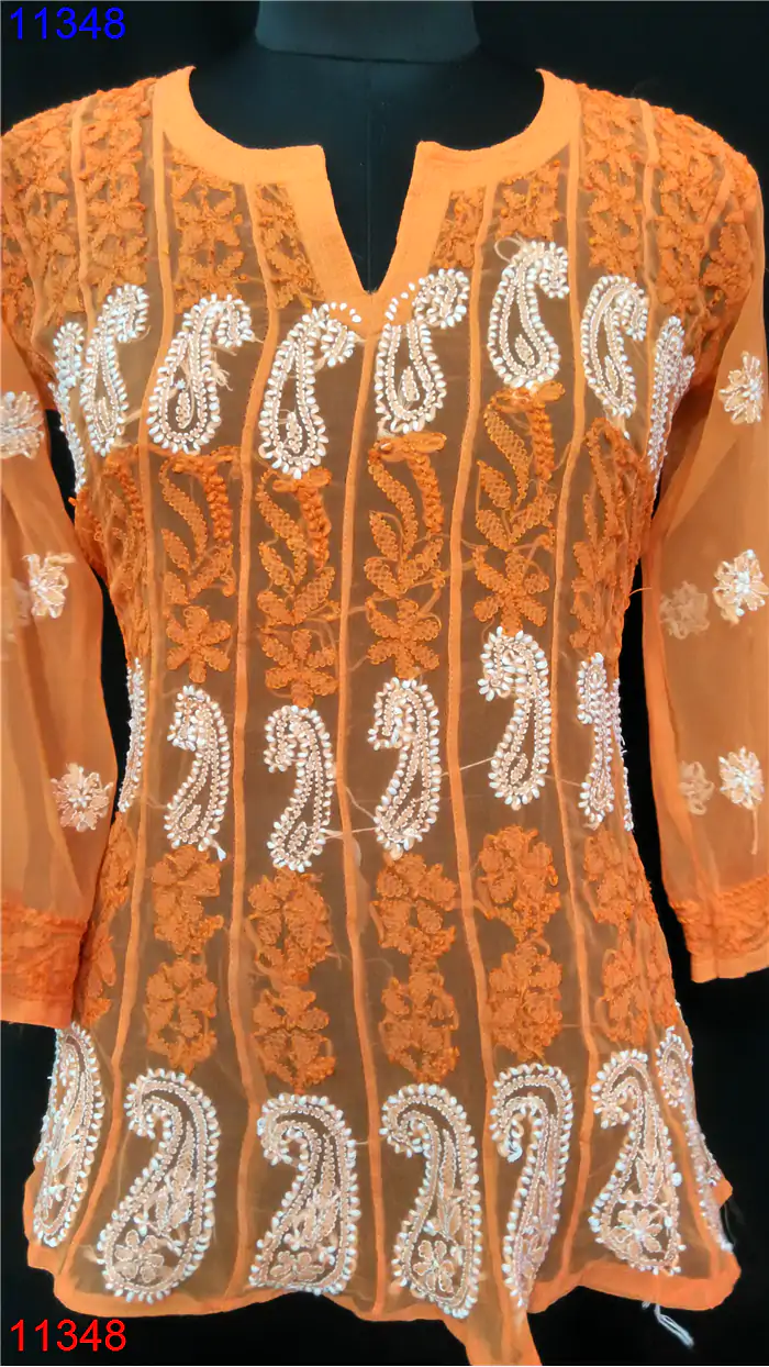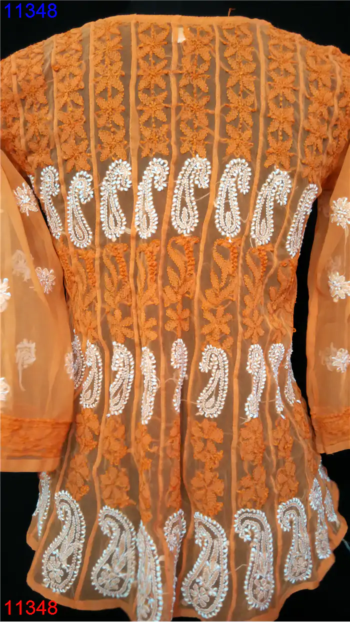 Semi Georgette Kurti Only Chikan work : 11348