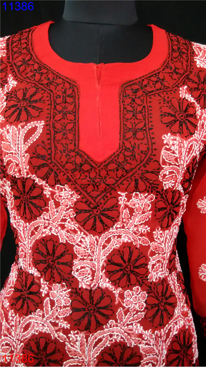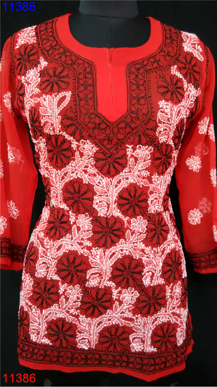 Semi Georgette Kurti Only Chikan work : 11386