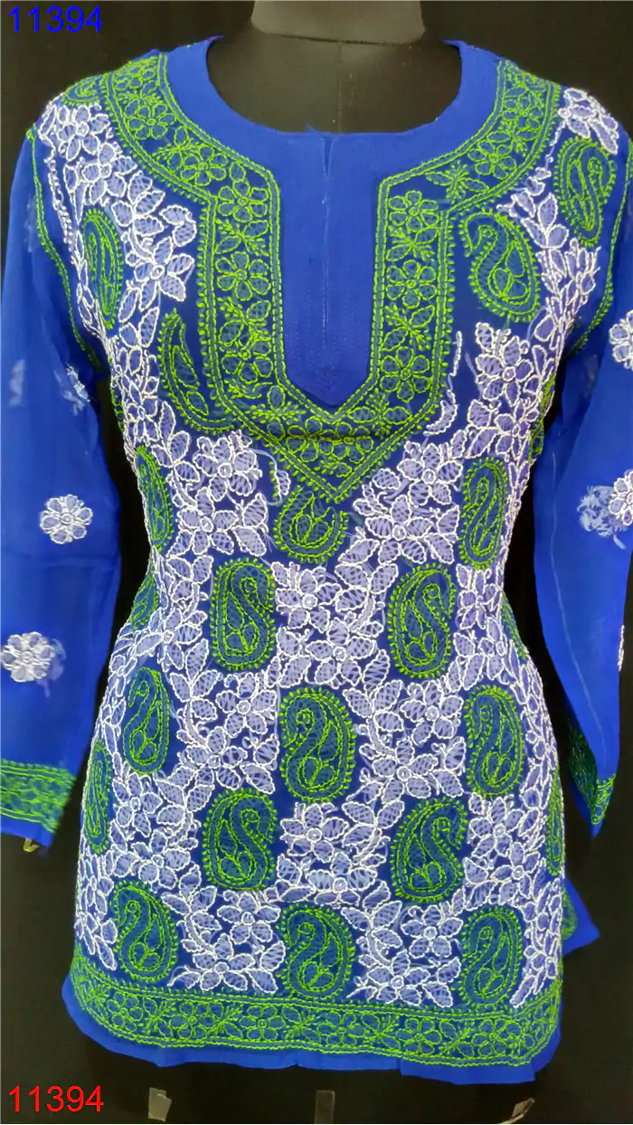 Semi Georgette Kurti Only Chikan work : 11394
