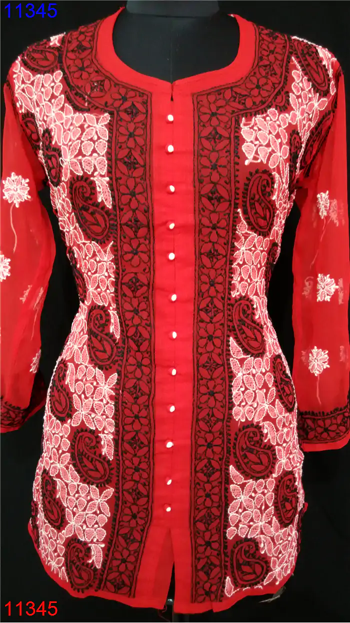Home » Semi Georgette Top » Semi Georgette Short Front Open Only Chikan work : 11345