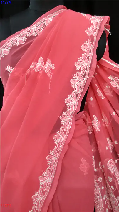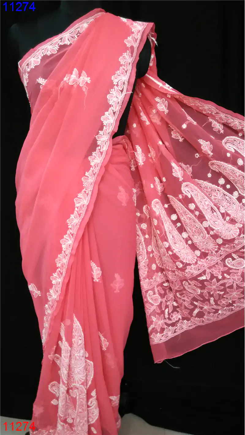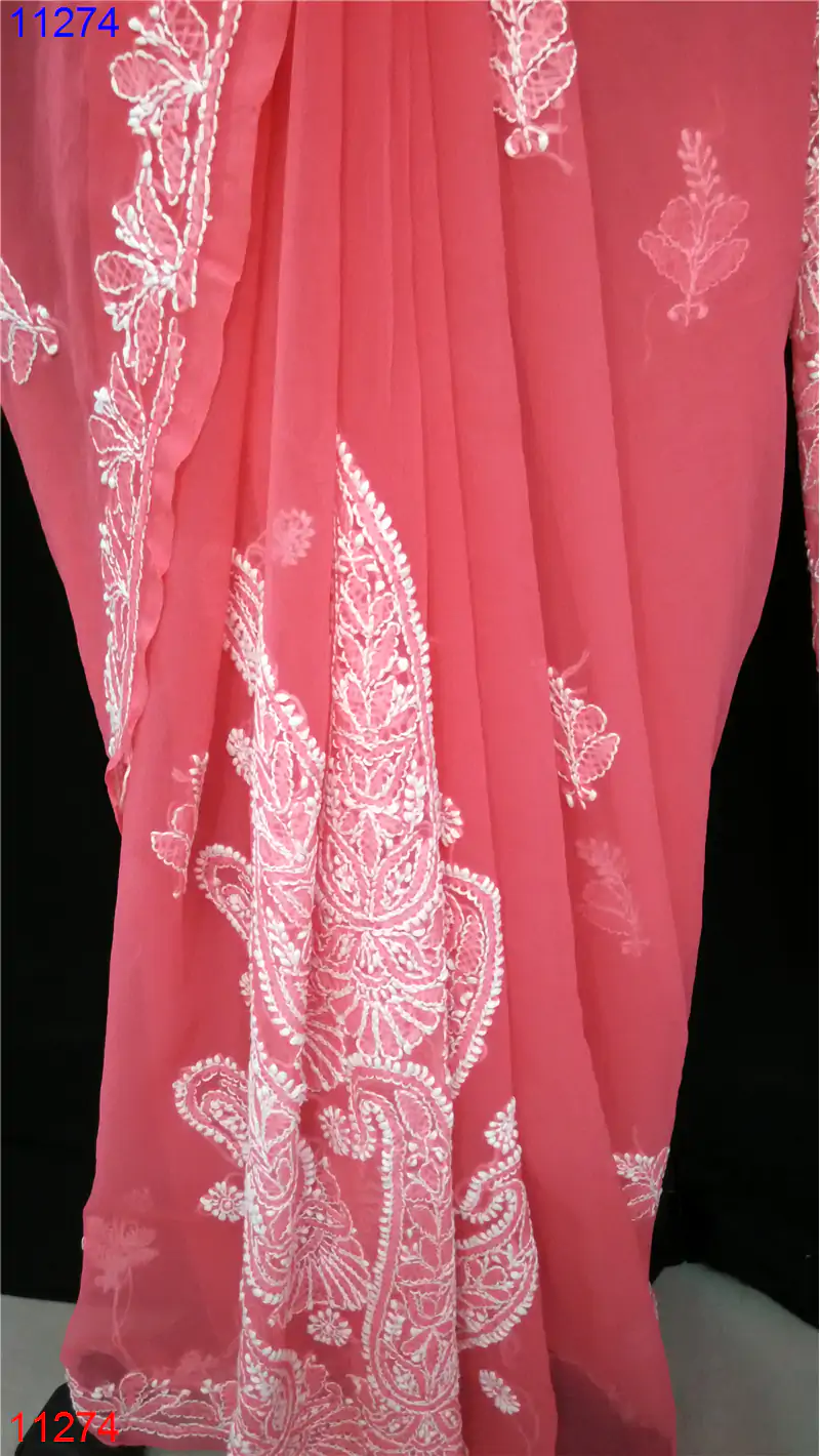 Home » Semi Georgette Saree » Semi Georgette Chikan Saree : 11274