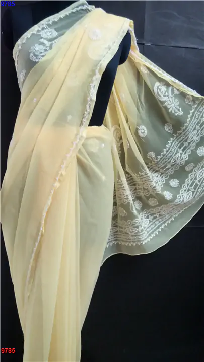 Semi Georgette Chikan Saree : 9785