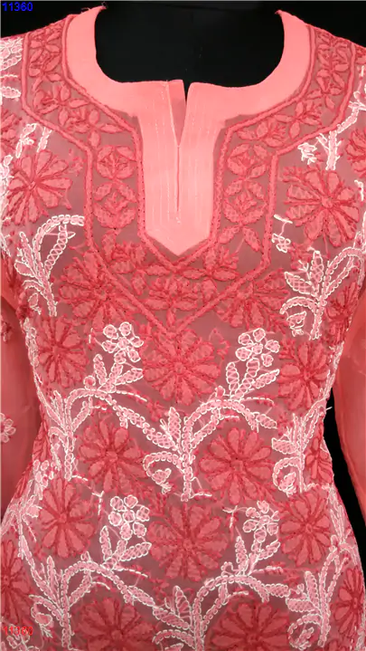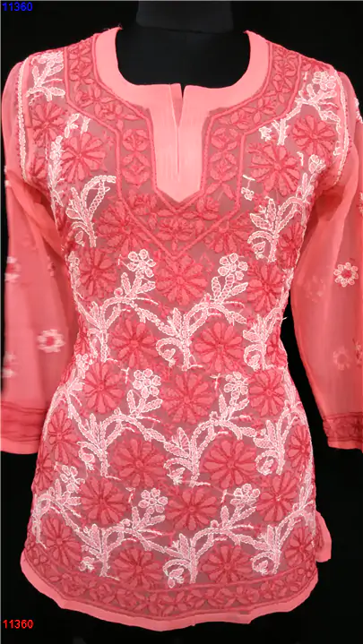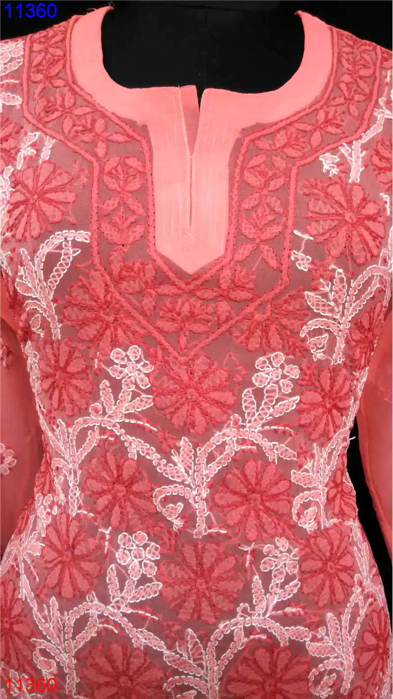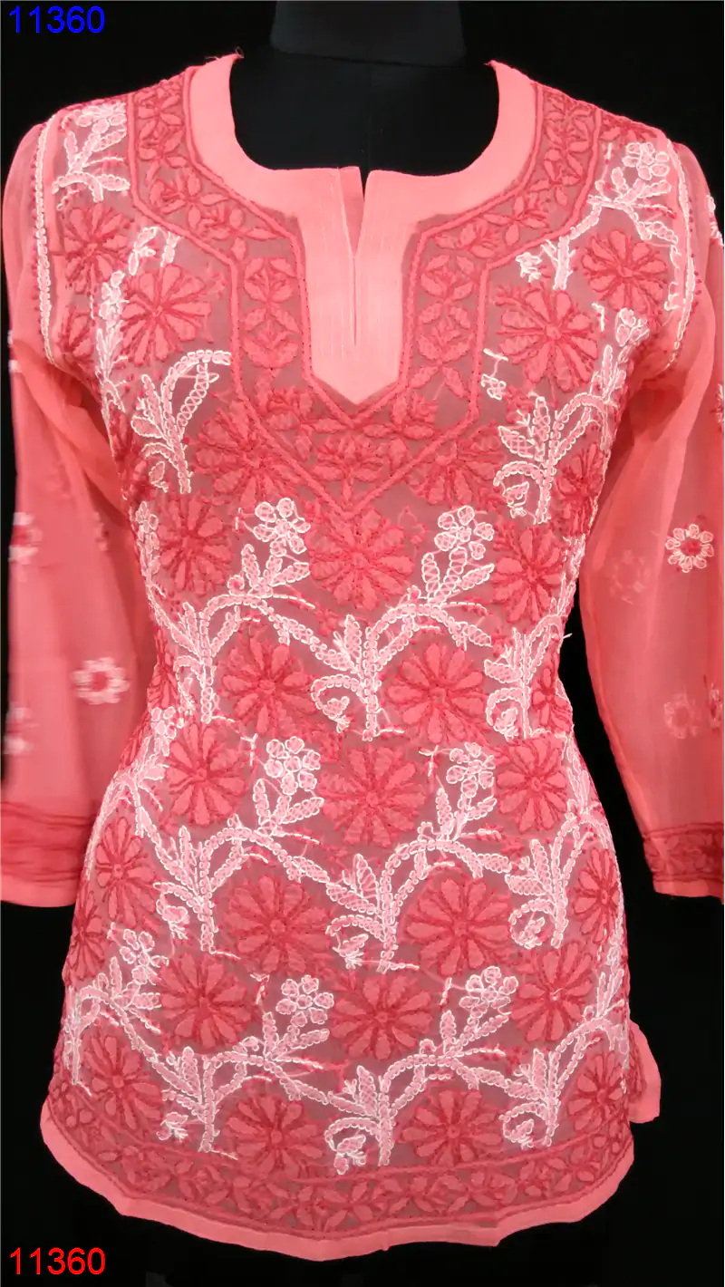 Semi Georgette Kurti Only Chikan work : 11360