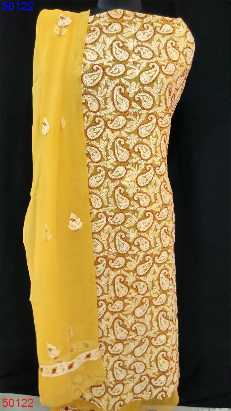 Semi Georgette Straight suit only Chikan work : 50122