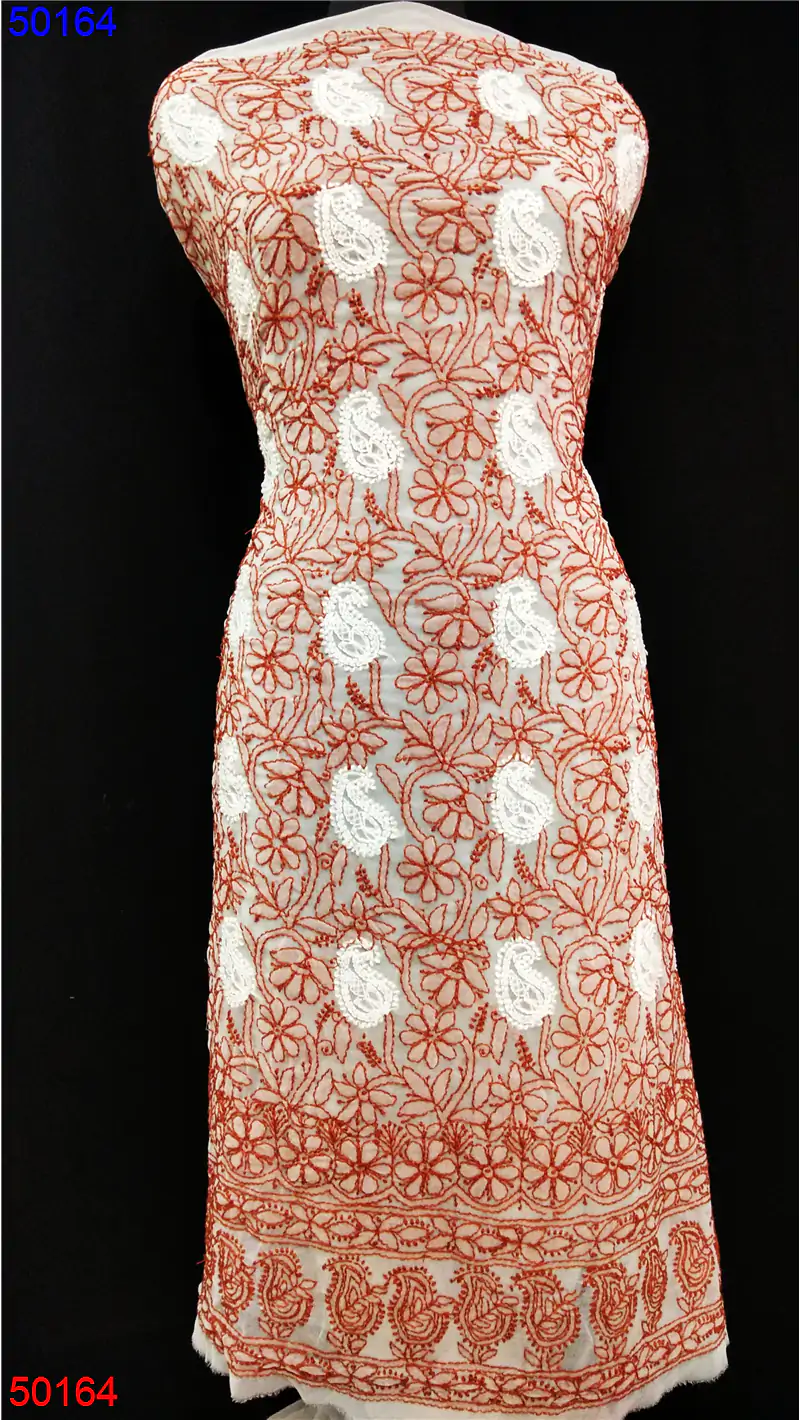 Semi Georgette Straight suit only Chikan work : 50164